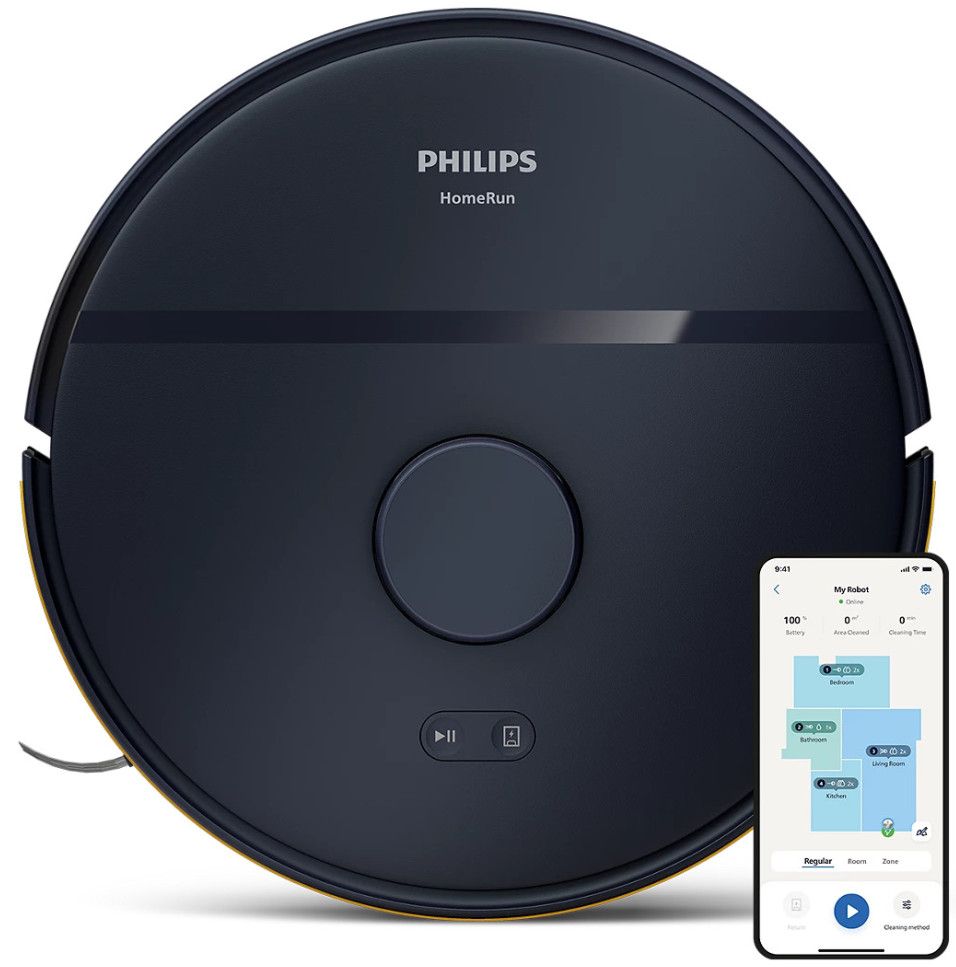 Aplikacja robota Philips HomeRun jest intuicyjna i przyjazna dla użytkownika. Zawiera instrukcje krok po kroku i pomocne filmy, które pomogą Ci w pełni wykorzystać możliwości robota. Aplikacja komunikuje się z Twoim robotem, dzięki czemu możesz kontrolować wydajność sprzątania z dowolnego miejsca, przeglądać raporty i aktualizacje dotyczące wydajności sprzątania oraz dowiedzieć się w czasie rzeczywistym, które obszary zostały już wyczyszczone. Zdecyduj, jak posprzątać pomieszczenie, gdzie robot nie może sprzątać lub o której godzinie robot powinien posprzątać Twój dom, aby podłoga lśniła czystością, gdy wrócisz do domu.
